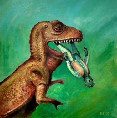 I am a "jack of all trades/ master of none" creative type who draws, paints, sculpts, 3d models/prints and works professionally as a freelance patent illustrator. When I learned Stars Wars was made by human hands, my childhood became about drawing aliens, monsters and robots. In college, I could not major in aliens, monsters, or robots, so I got my BFA in painting and drawing from Winthrop University.